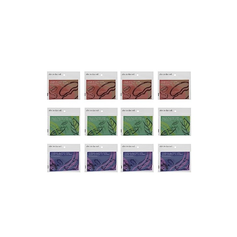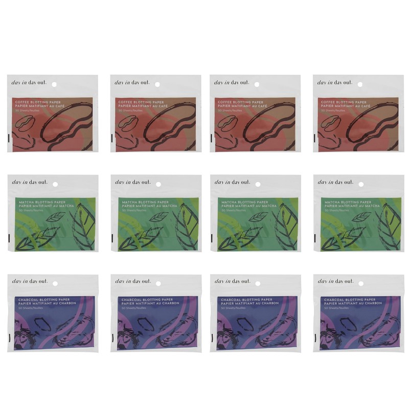 Day In Day Out Facial Blotting Paper Multipacks for Oil Control | Charcoal, Matcha, & Coffee Scented | 12 Packs of 50 Sheets (600)