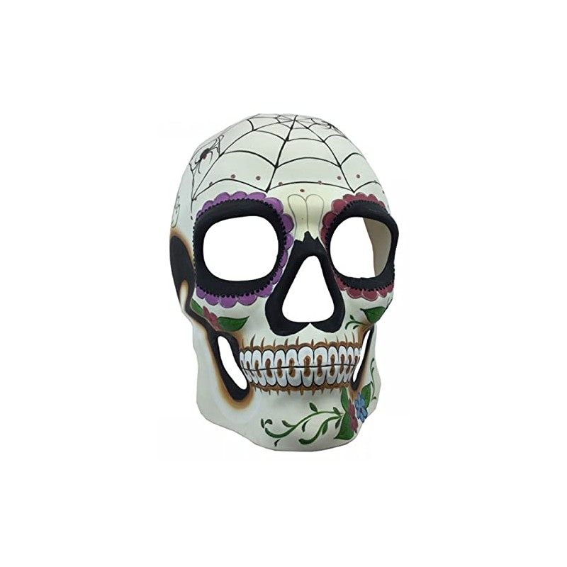 Day of the Dead Mask Dia de los Muertos Spider Web and Green Leaves