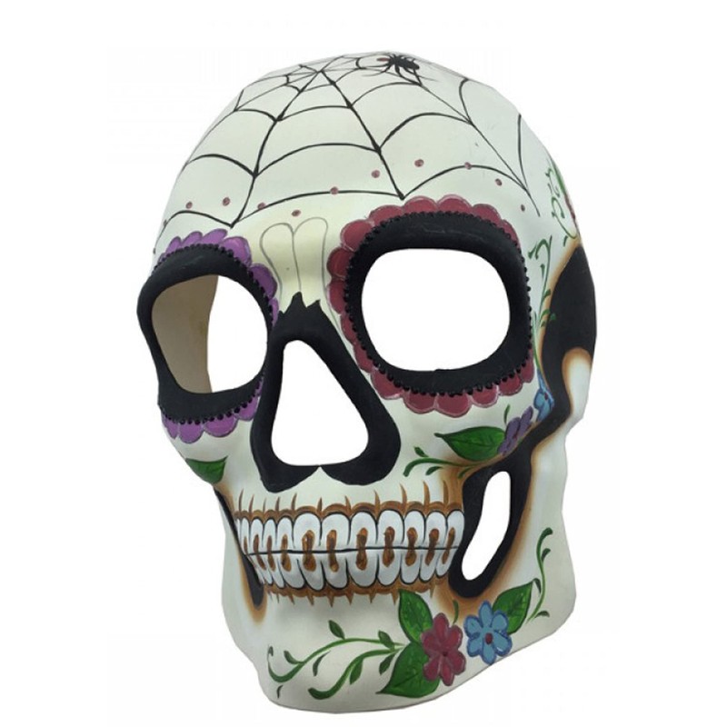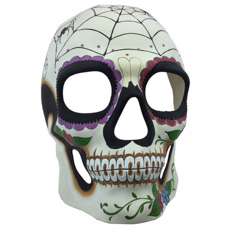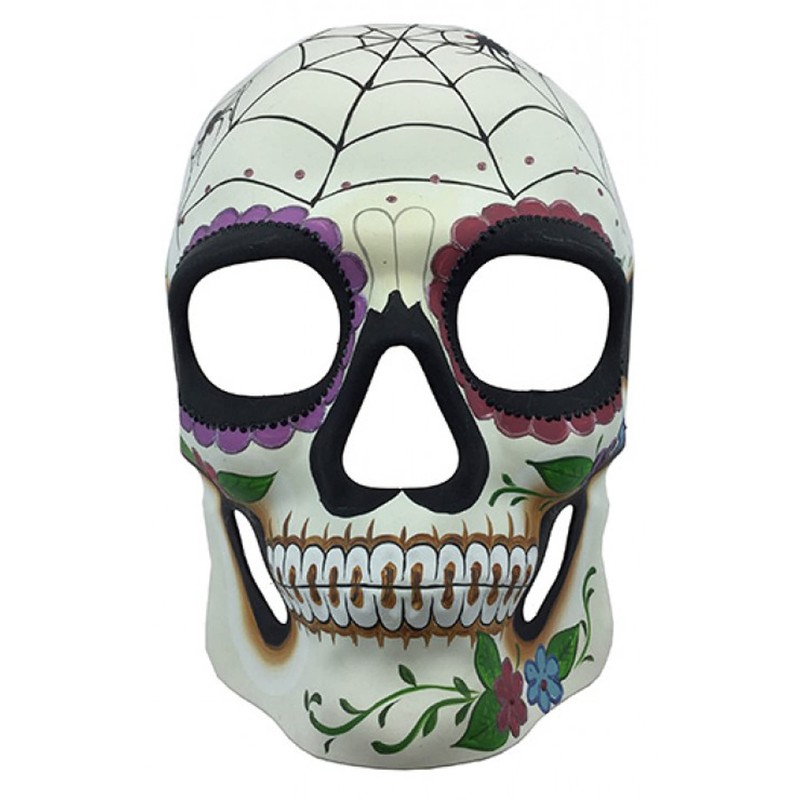 Day of the Dead Mask Dia de los Muertos Spider Web and Green Leaves