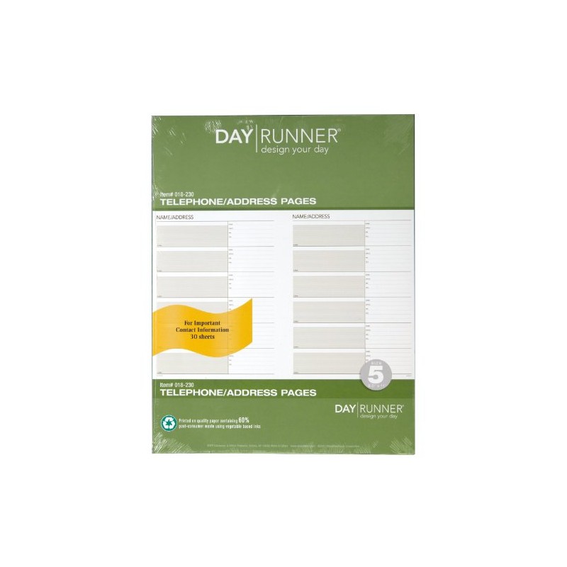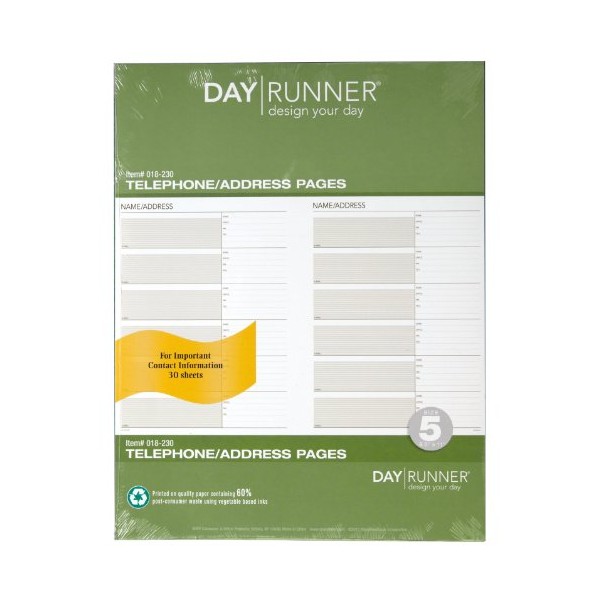 Day Runner Telephone and Address Pages, Refill, Loose-Leaf, Undated, for Planner, 8-1/2" x 11", Size 5, 30 Sheets/Pack (018-230)