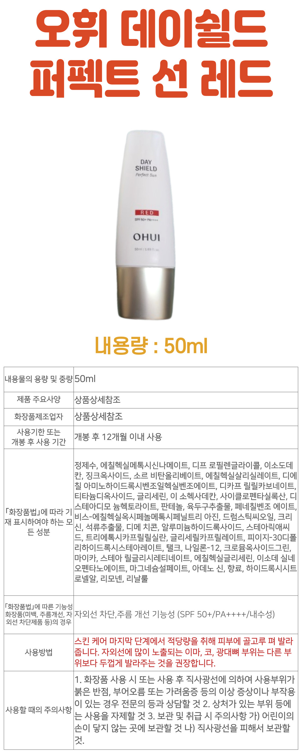 Day Shield Perfect Sun Red Redness Wrinkle Improvement Management Sunscreen Summer Ohui Care for the Whole Family Mild, Low-Irritation UV Protection / 데이쉴드 퍼펙트 선 레드 홍조 주름 개선 관리 선크림 여름 온가족 오휘 케어 순한 저자극 자외선 차단 이