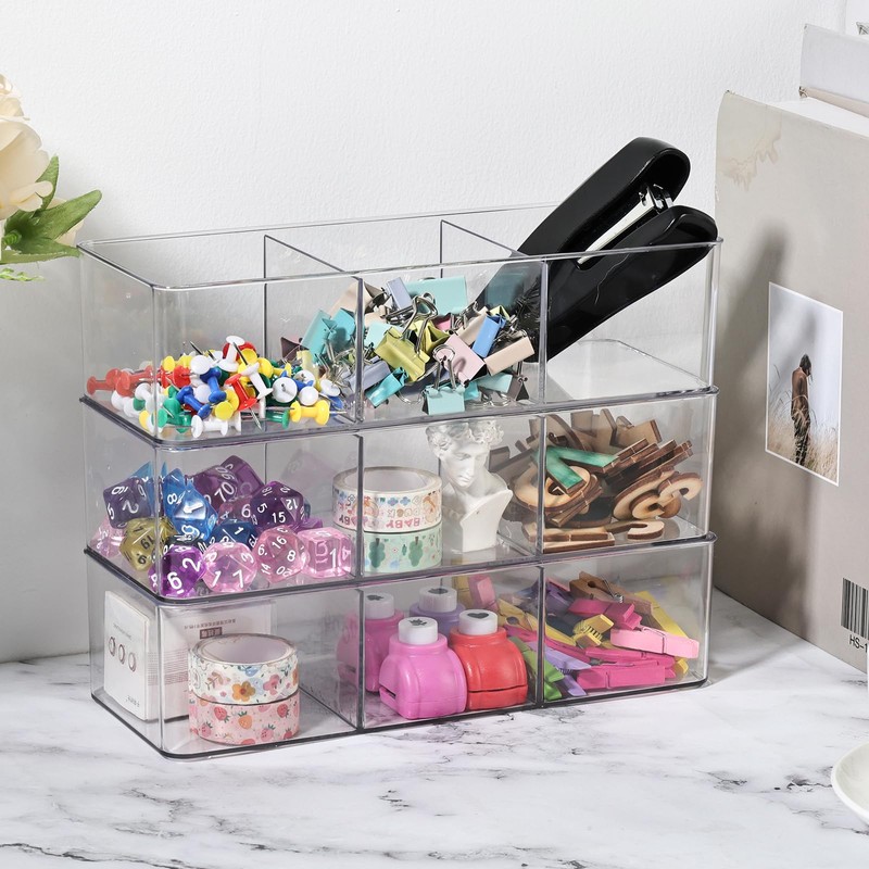- GOOD MATERIAL ,Durable and Strong: 3-grid clear acrylic makeup organizers drawer is made of non-brittle plastic ,which is durable and strong. 3 section clear plastic boxes are easy to care and which is sturdy and durable and easily cleaned.