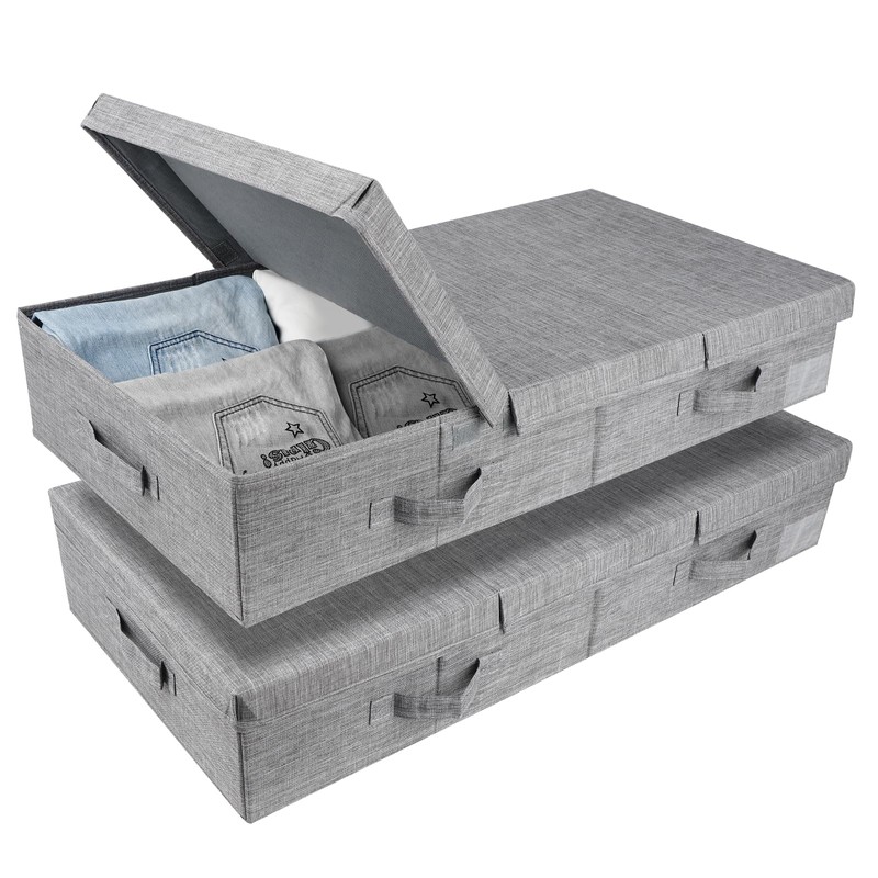 - The versatility storage fabric bins can provide all kinds of storage needs, from blankets, pillows, duvets and beddings to sweaters and heavy winter clothes. To keep your closet tidy and clean, these under-bed storage box bags are also suitable for storing out-of-season clothes and shoes, all types of books, toys and so on.