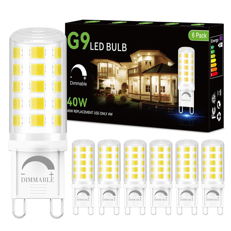 - 【Small size, easy to install】 Standard base G9 dimmable LED bulb: Product size (ΦxH): 0.67 x 1.94in. G9 led bulb 40w with fireproof ceramic base, which has high heat dissipation performance than ordinary LED bulbs. This Led G9 light bulbs with bi-pin base is perfect for crystal chandeliers, pendant lamps, ceiling lamps, ceiling fan lamps, cabinets, wall lamps and table lamps, light fixture globe.