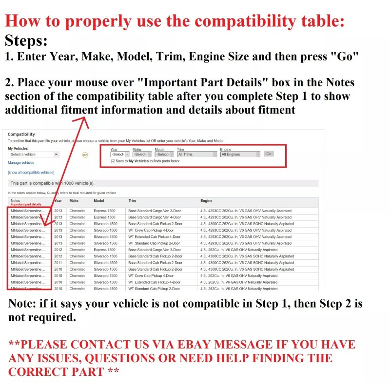 WHEN PURCHASING A SERPENTINE BELT, PLEASE USE THE COMPATIBILITY TABLE: