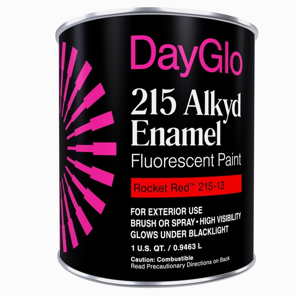 DayGlo Fluorescent Solvent-Based 215 Alkyd Brushing Enamel Paint, high visibility for interiors, arts and crafts, safety applications (Quart, Rocket Red, 215-13)