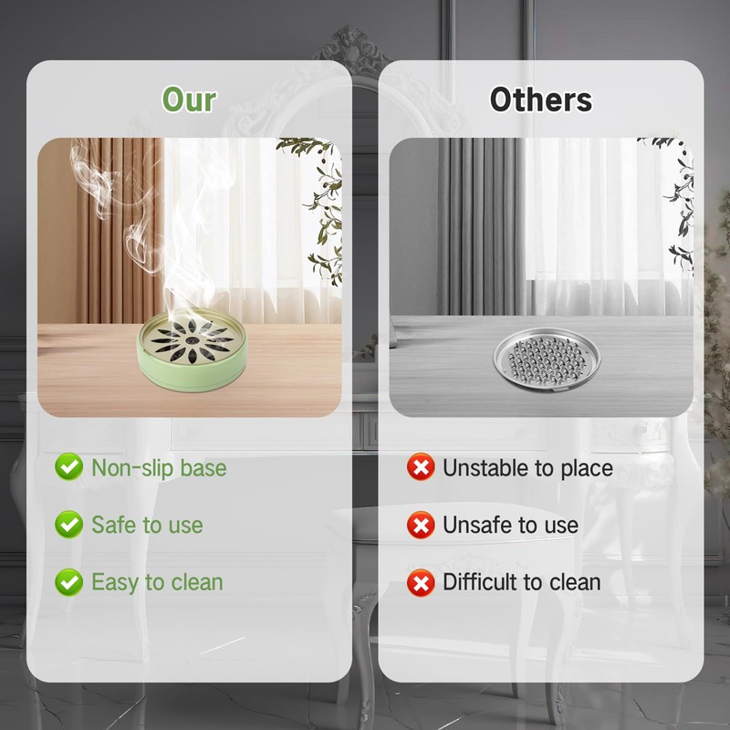 - ✅ 【Multi-scene Use】This mosquito coil holder is extremely versatile and suitable for use in a variety of scenarios, suitable for use at home, office, patio, hotel, study or picnic. It can also be used to hold mosquito incense, sandalwood, incense, etc. to keep clean and bring you a clean and tidy space