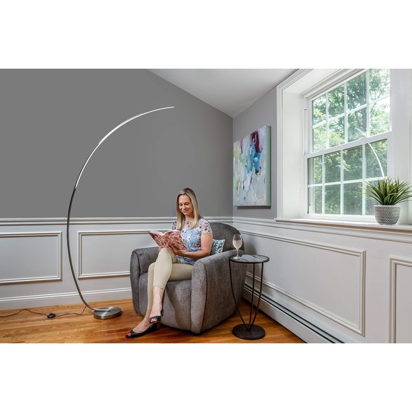 - The lamps arc shape allows you to create overhead light in hard to reach places such as over a sofa, table to bed; Measures 80 inches tall and features a convenient foot On/Off switch and heavy weighted base