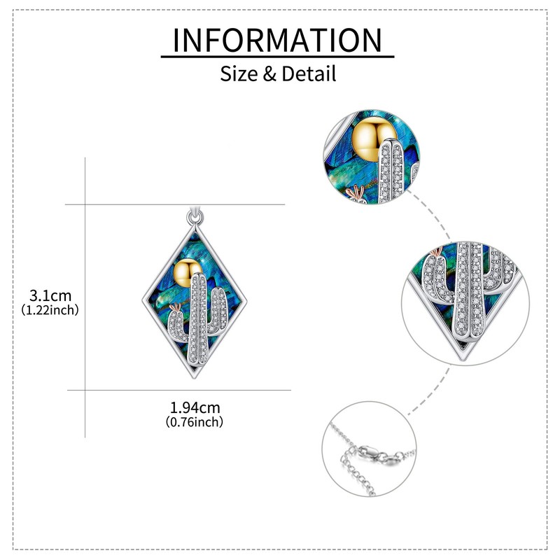 - Size & Packaging】Pendant Size:1.94*3.10cm Chain length: 45+5cm adjustable extension chain. Packaging: 1 x cactus necklace, 1 x exquisite jewelry box, 1 x silver cleaning cloth