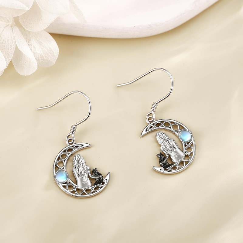 - Design: cats are cute, and women are gentle. When you sit on the moon with a cat and a person, peace, beauty and harmony are reflected in one earring. Give this cat earring to the lady who loves cats next to you.