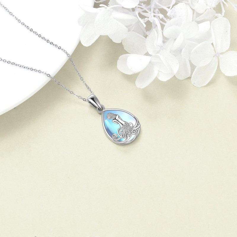 DAYLINLOVE Mermaid Necklace 925 Sterling Silver Moonstone Pendant Necklace Sea Beach Jewellery Gifts for Women Girls Mermaid Lover