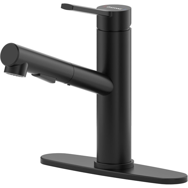 DAYONE Black RV Kitchen Faucet with Pull Down Sprayer – Low Profile Matte Black Bar Sink Faucet with Single Handle – Modern Utility Faucet with Deck Plate for 1 or 3-Hole Installation – Compact for Small Kitchen Spaces