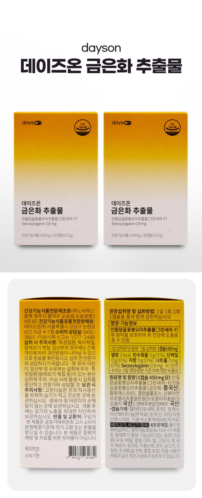 데이즈온 데이즈온 금은화 추출물 그린세라 위건강 450ml X 30캡슐 2통