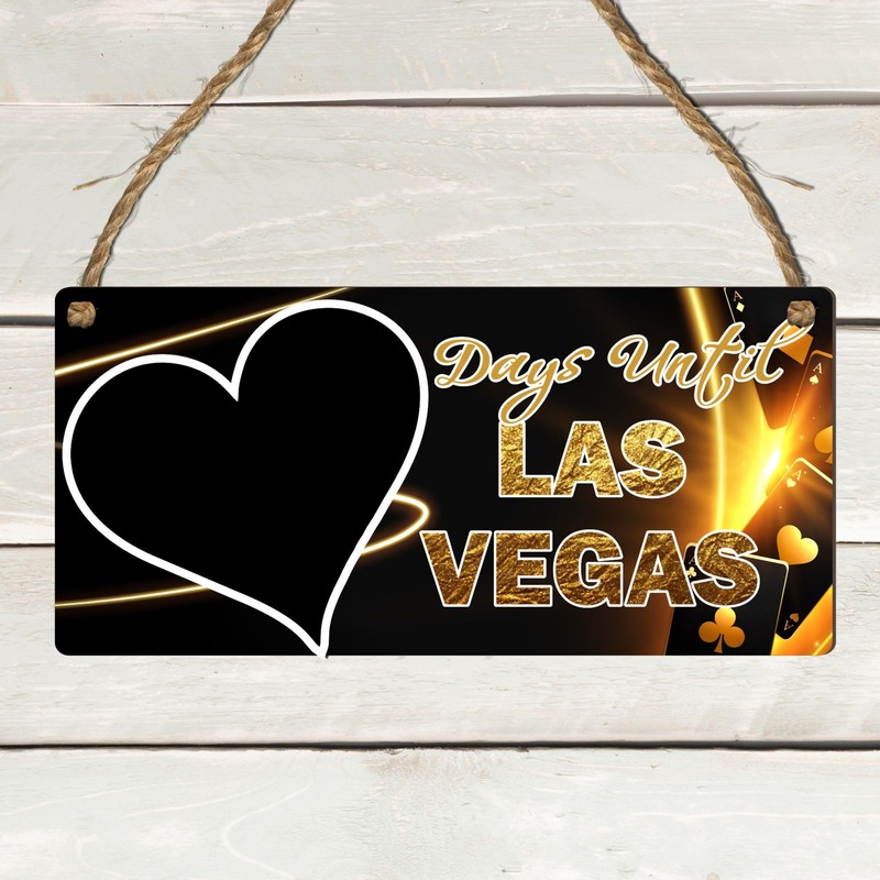 - 🎲 Vegas Countdown Plaque: Write the number of days remaining until your trip on the chalkboard heart and update it daily! This "Days Until Las Vegas" plaque is a perfect countdown tool for anyone looking forward to their next Vegas adventure.