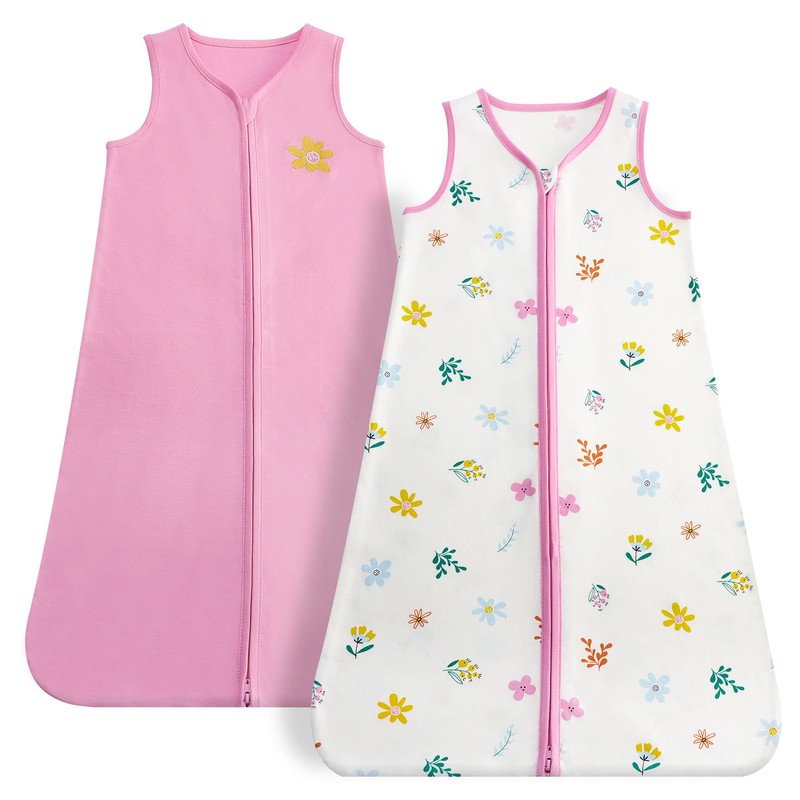 DaysU Cotton Baby Wearable Blanket, Sleeveless Baby Sleep Sack with Two-Way Zipper, Baby Wearable Blanket for Newborn Baby Girl 6-12 Months, 2-Pack, Pink Flower, 0.5 TOG