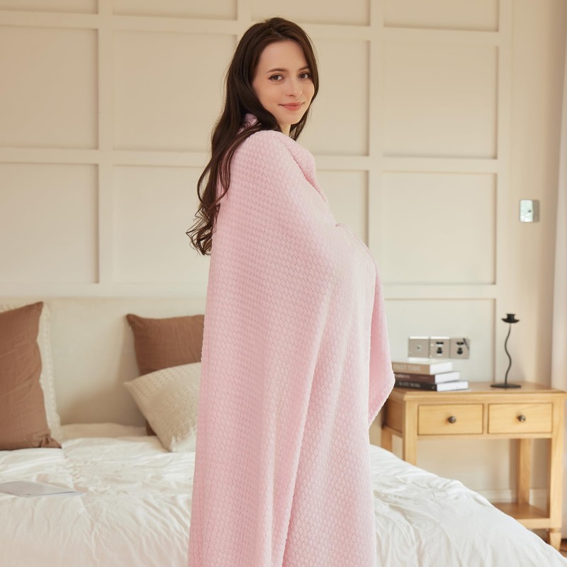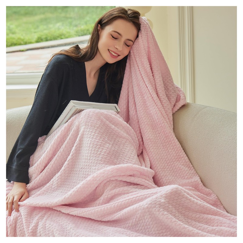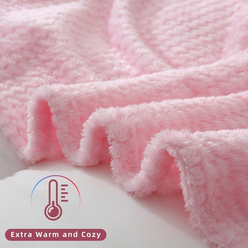 DaysU Twin Blanket for Couch Sofa Bed, Decorative Reversible Diamond Jacquard Fleece Blankets Fuzzy Soft Cozy Warm Micro Flannel Twin Size Blanket, Pink, Twin(60"x80")