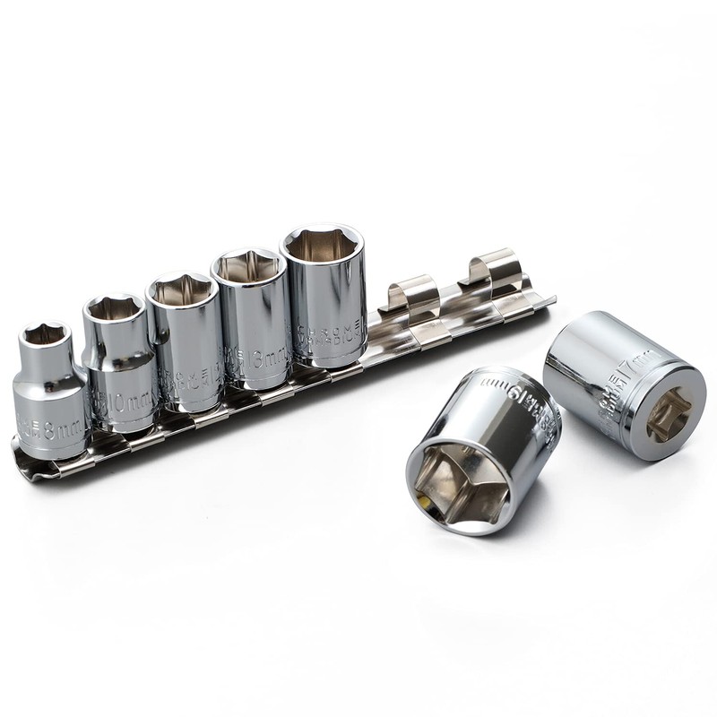 Daytona 33239 Motorcycle Tool, Hex Socket, Short, 3/8 Inch Drive, 7-Piece Set, Socket Rail Included