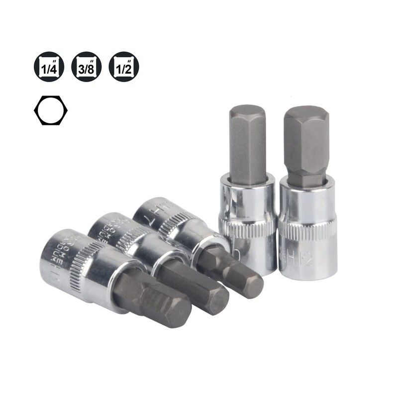 - Hexagon socket package content: 1/4 "drive: 2mm, 2.5mm, 3mm, 4mm, 5mm, 5.5mm, 6mm, 3/8" drive: 7mm, 8mm, 9mm, 10mm, 12mm, 1/2 "drive: 14mm