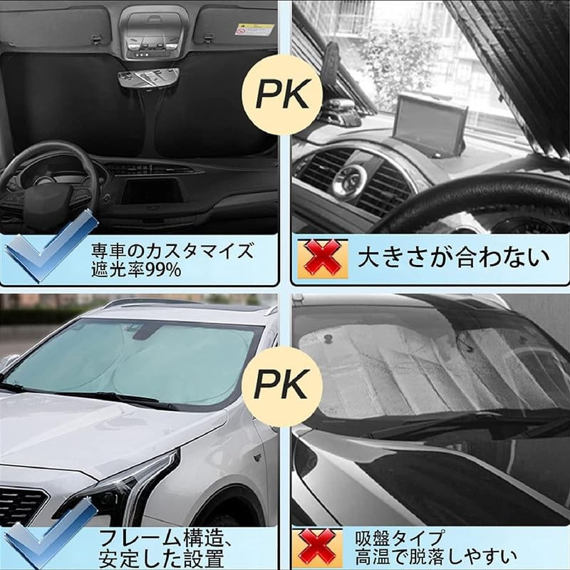 - 6-layer construction and high quality materials: The 6-layer construction provides thermal insulation, especially in summer, when the dazzling sun hits the car windshield, the car interior will look like an oven, and it may easily be damaged if exposed for a long time. High density parasol made of special insulation and UV protection fabric, aluminum foil reflective layer, and extra thick high-density non-woven fabric for excellent UV protection It can also block over 99% of UV rays