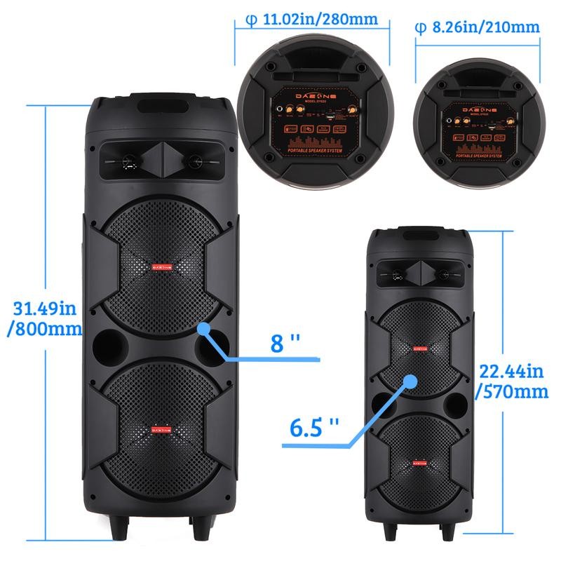 Dazone 6000W/4000W Portable High Powered Bluetooth, Double 8"/6.5" Subwoofer PA Speaker System w/Remote, Microphone - Speaker Horn Size: Dual 8" Woofer