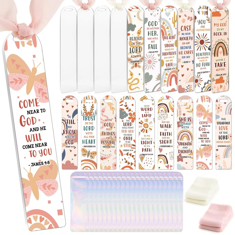 Dazoratix Christian Acrylic Bookmark Blanks - 60 Pcs Bible Verse Boho Bookmark Making Kit Religious Motivational Rainbow Butterfly UV DTF Transfer Stickers Wraps Women Girl Book Lovers DIY Craft Gifts