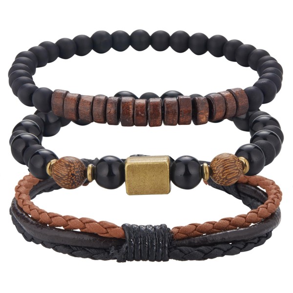 - 3-piece men's bracelet set: Our carefully crafted bracelet set includes a stainless steel chain bracelet, a bracelet made of natural stone beads and an adjustable braided bracelet. These bracelets are made with various metal accessories and natural gemstones. You can wear them individually or combine them to create a versatile style that exudes masculine charm!