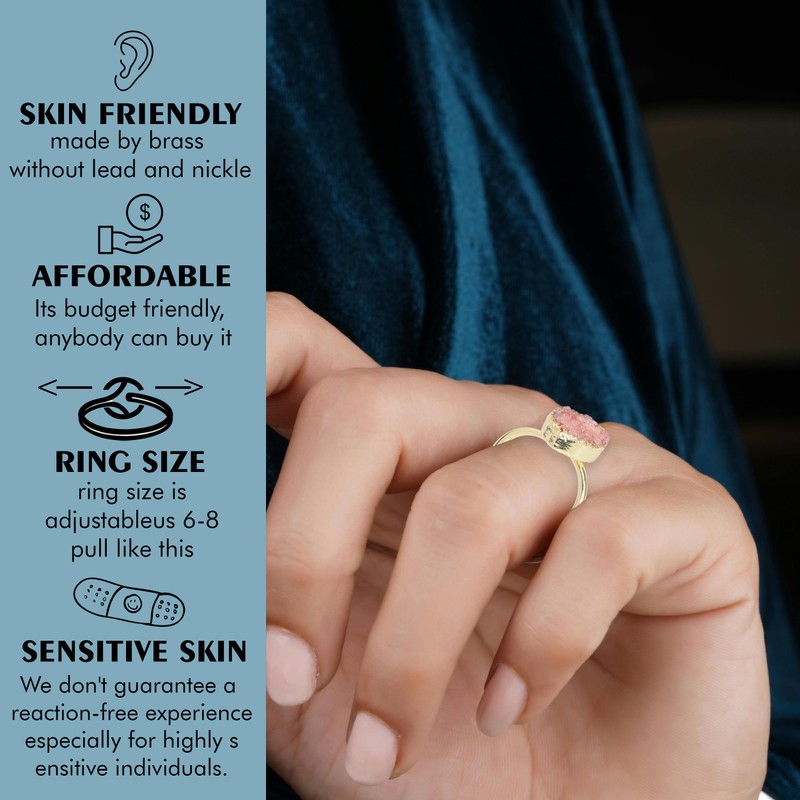 - ✔️ Versatile Fit: This ring features an adjustable top open design that accommodates US sizes 6 to 8, providing comfort and adaptability. Its unique druzy stones in marquise design adds a stylish touch, ensuring you find your perfect fit effortlessly.