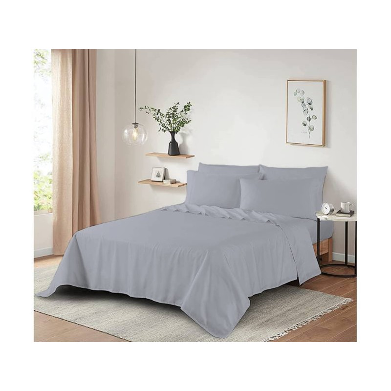 DAZZLE COLLECTION 100% Egyptian Cotton Sheet 200 Thread Count Bed Flat Sheet Hotel Quality Bedding Set Soft & Crisp Cotton Caravan Campervan (Double Flat Sheet, Silver)