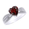 Dazzling Diamond and Heart-Shaped Personalized Garnet Birthstone Proposal Ring in Sterling Silver (Size 10.75)
