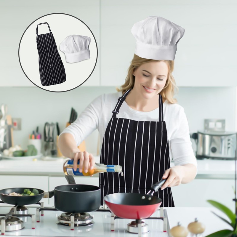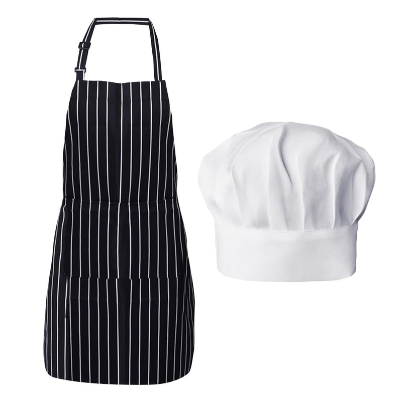 - Package contents: you will receive 1 piece halter apron with the size 47 x 57 cm in black and white striped colour; 1 piece white chef hat to meet your daily needs.