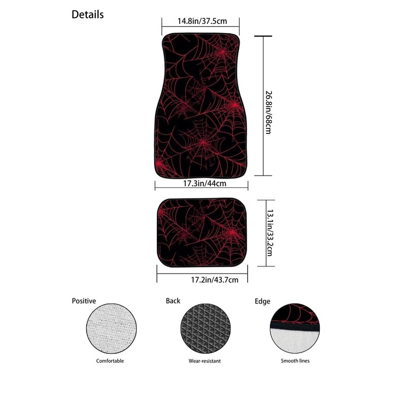 DBBXHZJY Red Spider Web Floor Mats for Car,4 Piece Gothic Rugs Carpet Anti-Sl...