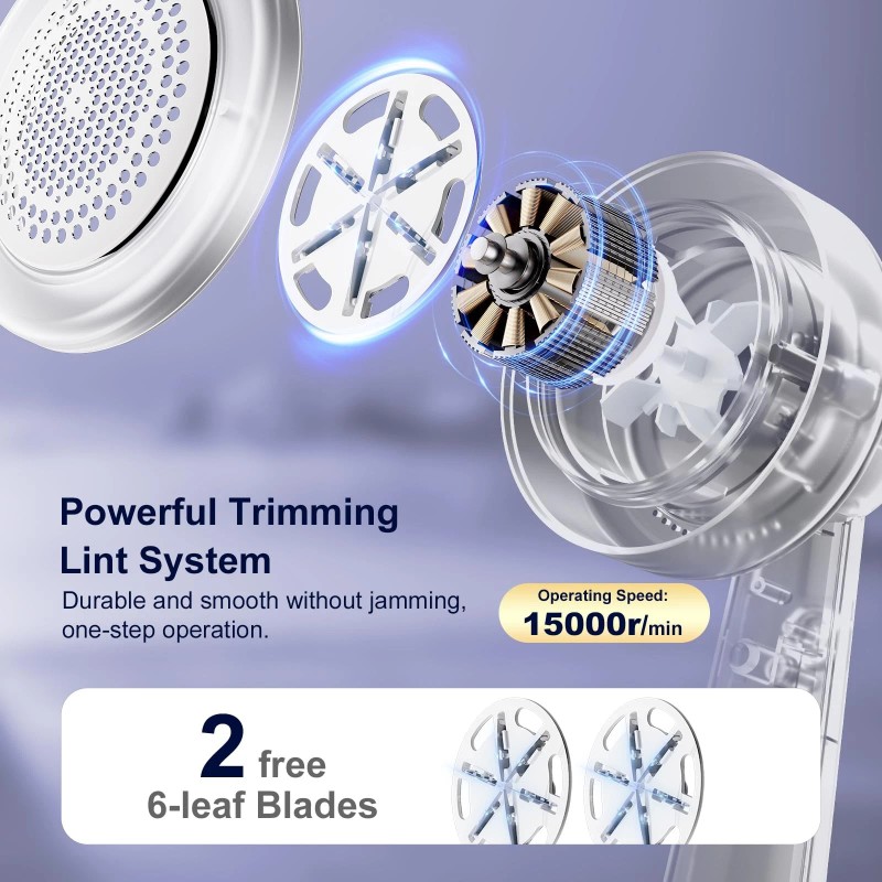 --The solid construction of this device ensures personal safety while handling it. Additionally, the robust turbo fan blade design enables a two-step process of suctioning and shaving, making it more effective than traditional lint removers. High-speed motor running at 15000r/min, deliver outstanding performance.