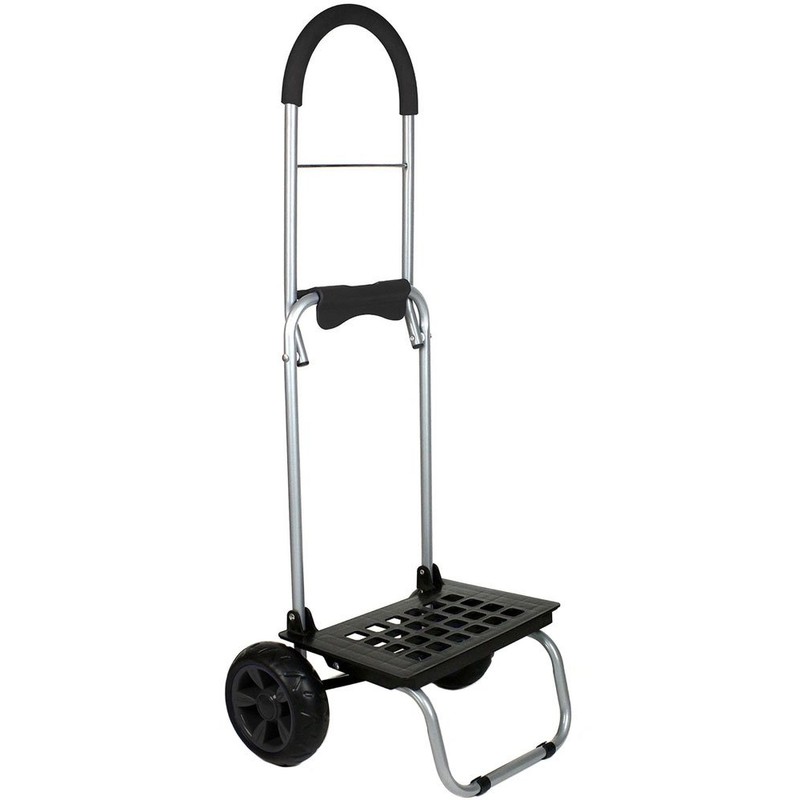 The Mighty Max personal Dolly, folds in 1/2 for compact storage. It has a comfort cushion handle that allows you to pull it anywhere. The oversized beefy wheels allow for smooth rolling on any surface, including cobblestones, sand, stairs or any uneven surfaces.