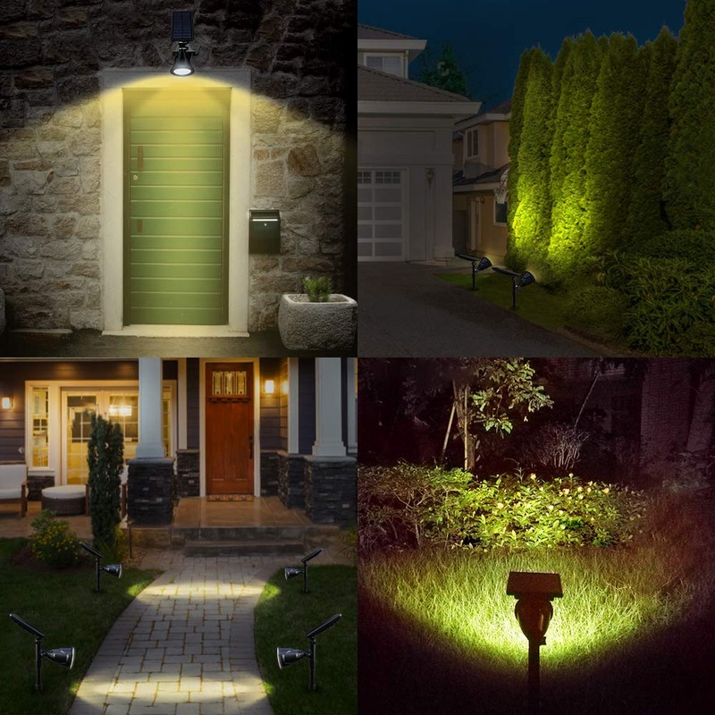 - 🔥【Automatically Working Mode】Solar Landscape spotlights built-in smart LIGHT SENSOR, automatically turns on as the ambient light becomes insufficient. Upgraded high conversion rate monocrystalline silicon solar panel absorbs and converts sunlight into electricity and stores in daytime, automatically light up at darkness (Auto on at night / Auto off at sunrise ). High Light Mode (6hrs)/ Low Light Mode (10hrs), QUESTIONS? No problem!