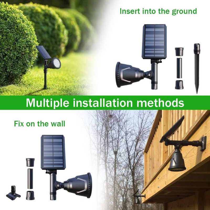- 🔥【IP65 Waterproof & All Weather-Resistant】This solar garden spotlights is IP65 waterproof. High-quality ABS material provides excellent waterproof protection and durability. In addition, the solar light has built-in PCB board, which additionally adds protection of the waterproof coating, longest lasting life and durability than other yard lights on the market.