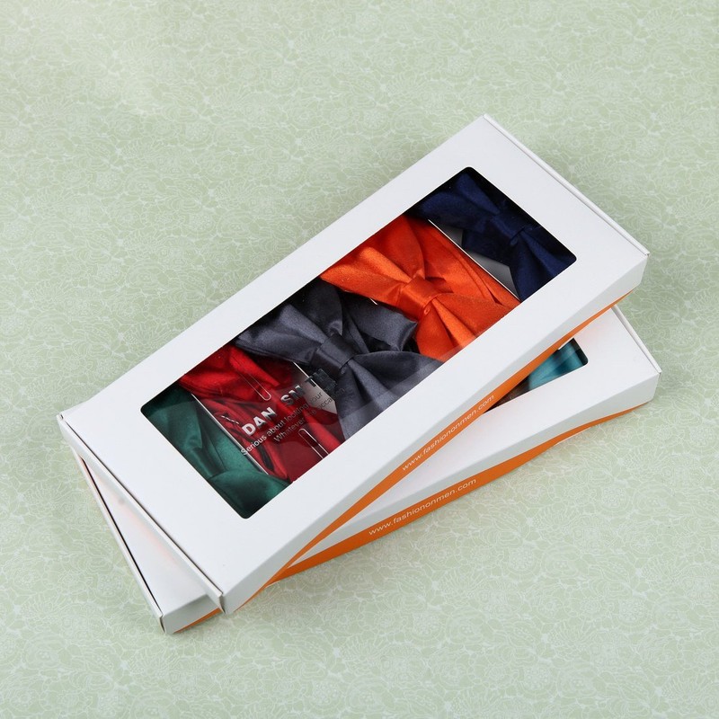 DBF2004 Poly Bowtie Red,Blue,Yellow Green,Medium Slate Blue,Black Solid Poly Pre-tied Bowtie Present Box Set 5T By Dan Smith