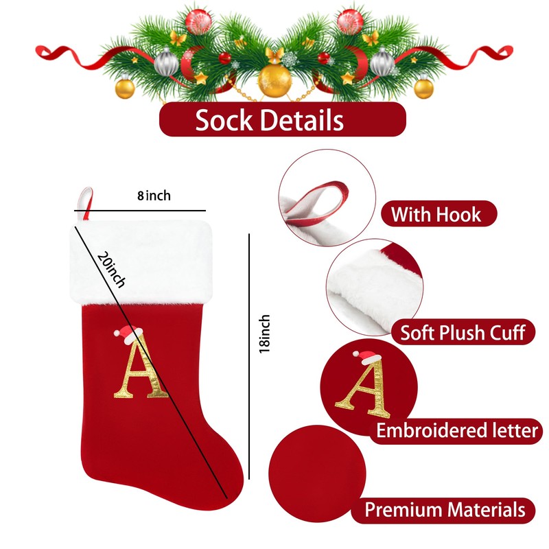 - Versatile Hanging Options: 20 Inches Christmas Stockings with Letters. Hang this stocking on your fireplace mantel, staircase, or even at the foot of your bed to add a festive touch to any room.