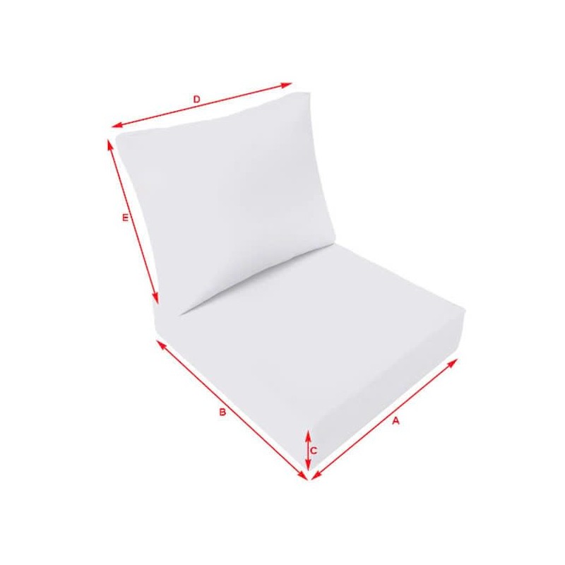- Seat Pad Cover and Insert: A: 23" x B: 24" x C: 6"