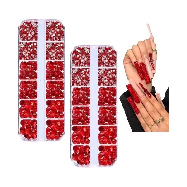 Dbmb 2 Pack Piedra, Cristal De Calidad Para Uñas Roja