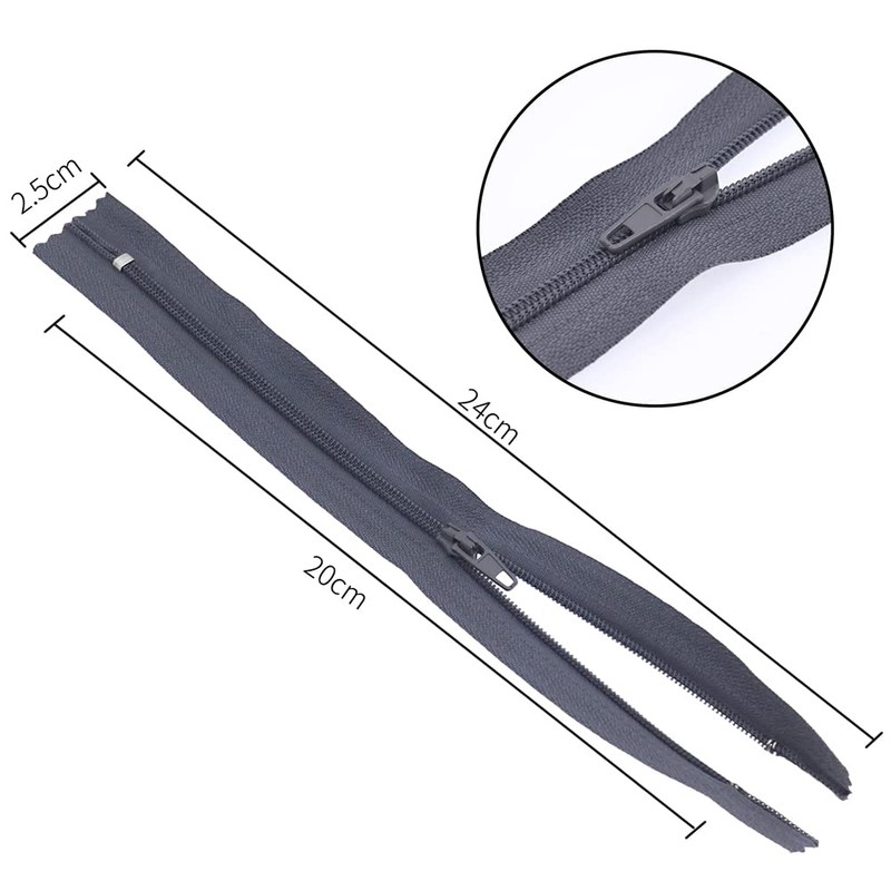 DBOO 20cm Dark Gray Zips 3 Pcs Nylon Closed End Zippers Fasteners Chunky Zip Open-Ended Zip Sewing Accessory