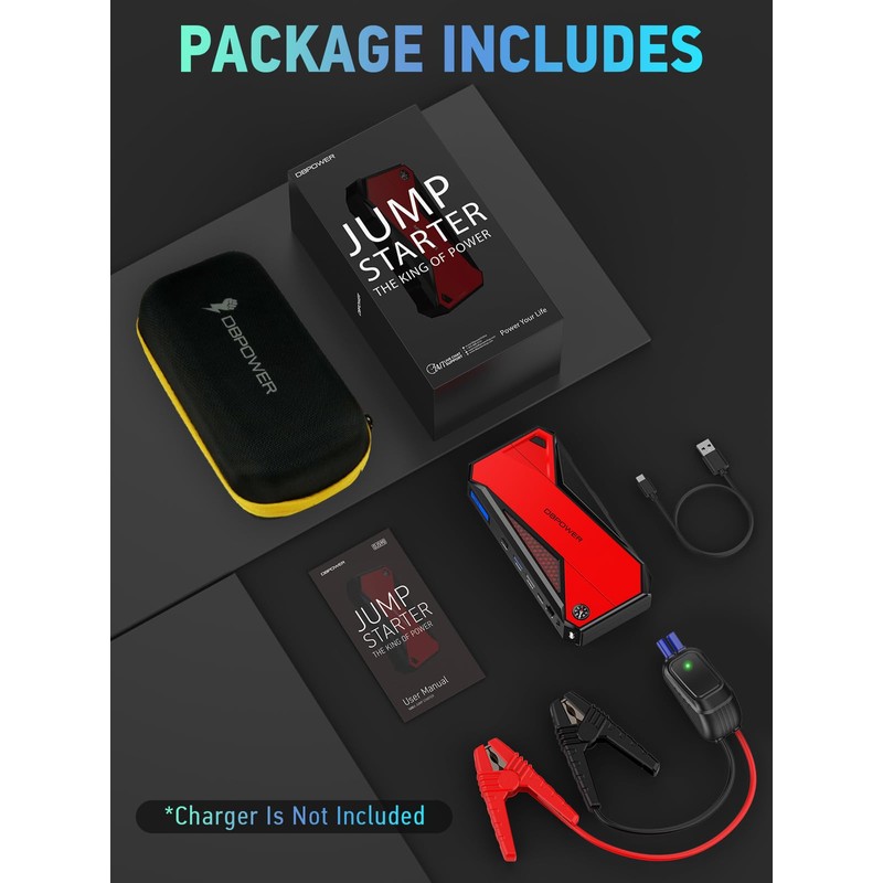 - OVER 10 MILLION UNITS SOLD: DBPOWER has over 7 years of experience in this field, we provide a safe and reliable products, 12 months of hassle-free warranty, and lifetime technical support. Contact us anytime with any questions. The package includes one Jump Starter, one intelligent jumper clamps, one USB charging cable, jump starter carry case, and user manual.