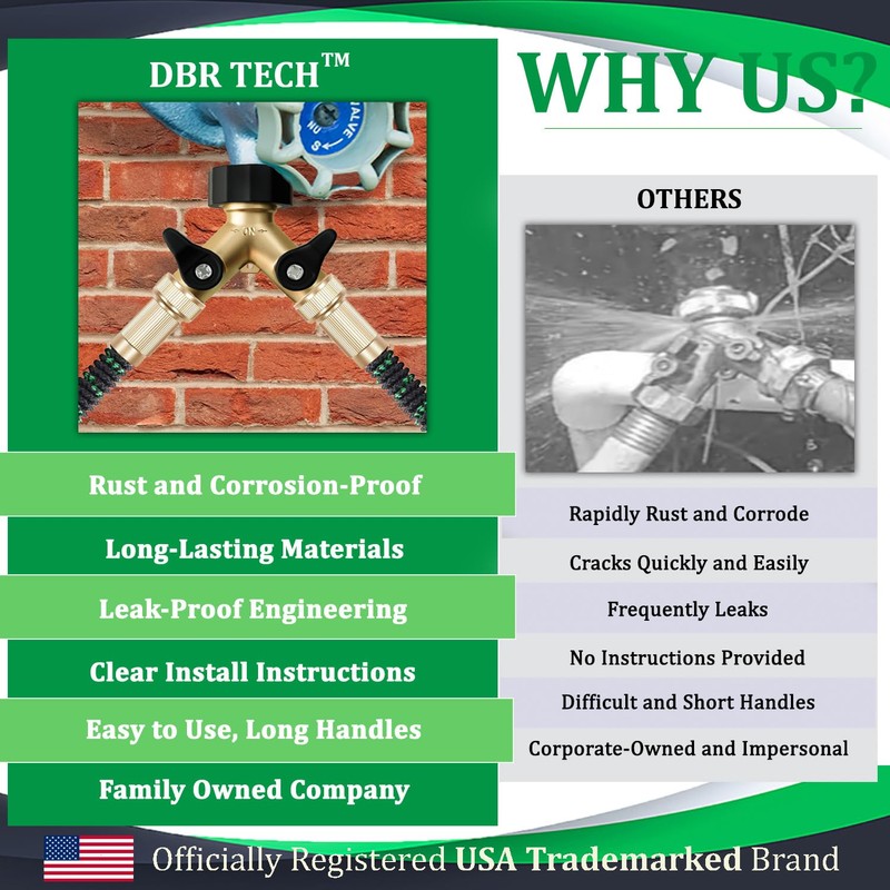 - Trusted Quality Control - Experience the resilience and durability of our DBR Tech Hose Splitter 2 Way Attachment. We pride ourselves on the robustness of our product, offering reliable customer support and a commitment to long-lasting reusability. Join the many satisfied customers who consider this the best two way Y hose splitter on the market. Enhance your gardening with this top-quality hose connector. Order yours today!