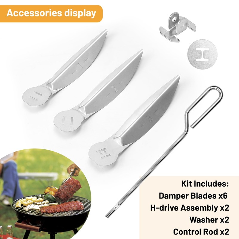 The grill replacement parts can be used not only for cleaning, but also to regulate the ventilation slots and adjust the fire and heat, making grilling easier and the food tastier.