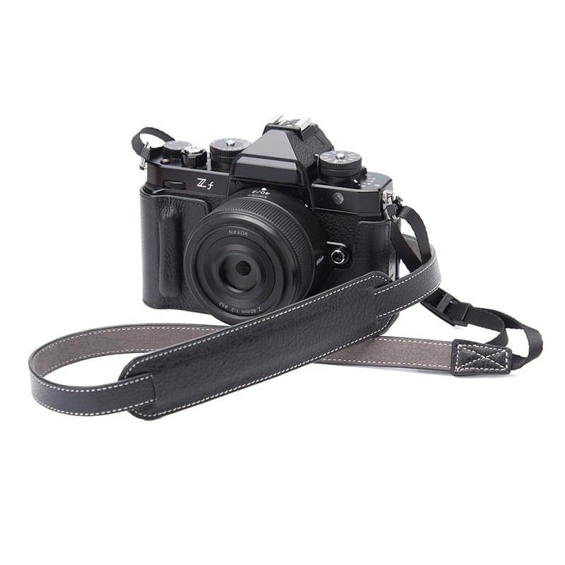 DBZZ Handcrafted Vintage Half-Wrap Camera Protector Genuine Leather Camera Case for Nikon ZF (Black combination set)