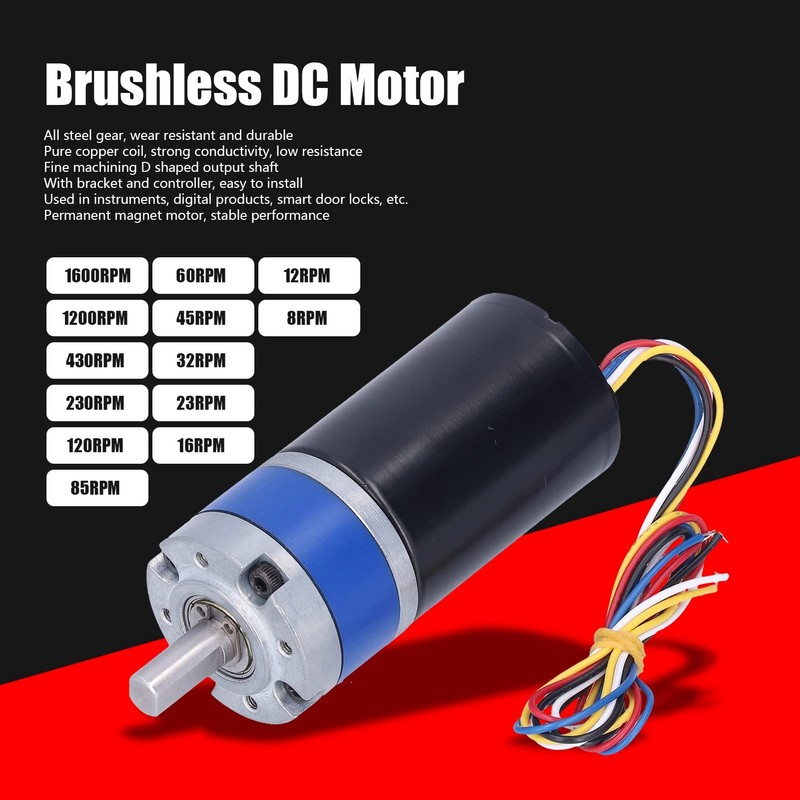 DC 12 V Brushless Gear Motor Speed Reduction Pure Copper Coil Motor 8 mm D-Shaft with Controller (45 rpm)