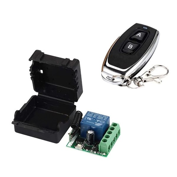 DC 12V Remote Control Switch 433Mhz RF Wireless Relay Receiver Remote Control Light Switch Module Garage Door Remote for Motor, Light, Gate door, DIY Wireless Controller (1 Recever and 1 Transmitter)