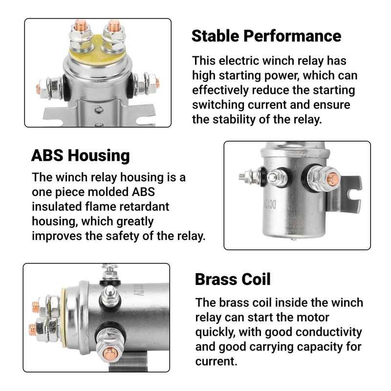 - Stable performance: this electric winch relay has high starting power, which can effectively reduce the starting switching current and ensuring the stability of the relay.