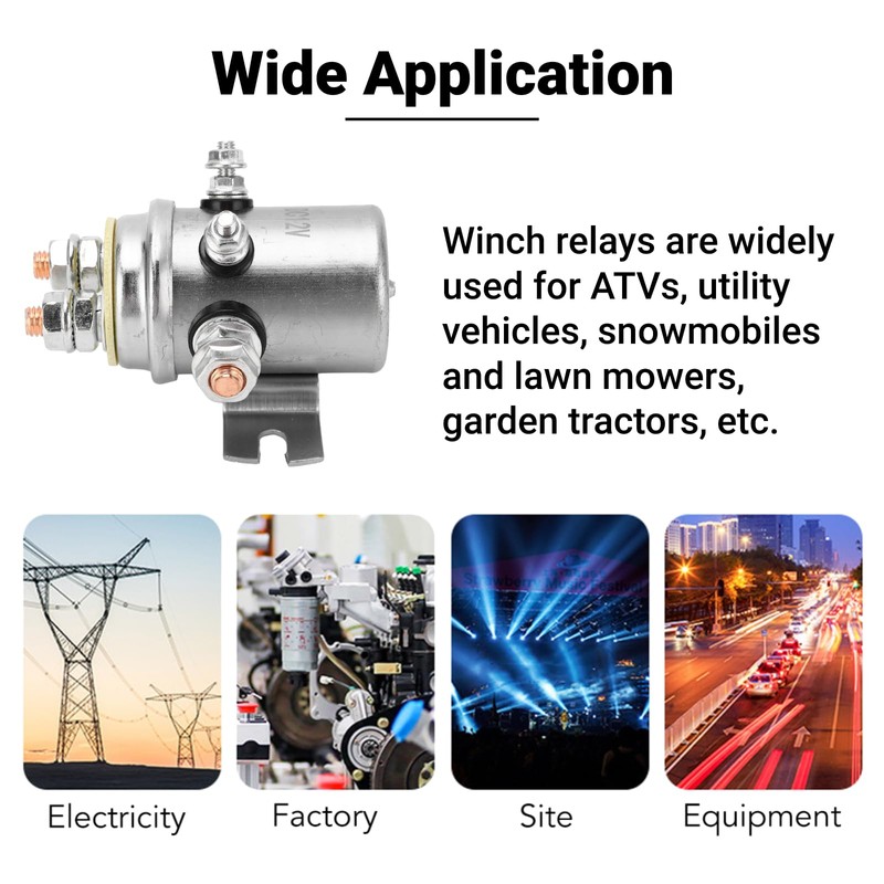 - Wide application: winch relays are often used for off-road vehicles, commercial vehicles, snowmobiles and lawn mowers, garden tractors, etc.