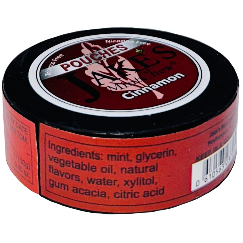 - Includes: 10 Cans of Jake's Mint Chew Cinnamon Pouch and 1 DC Crafts Nation Mud Bud Spittoon.