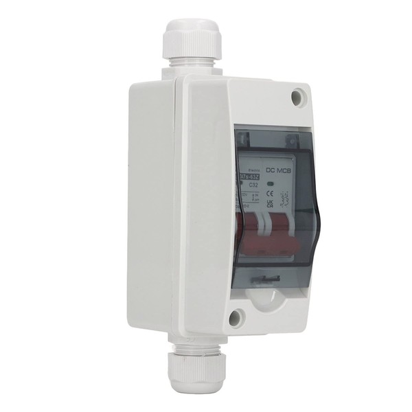 DC Miniature Circuit Breaker, 32Amp Waterproof Mini Distribution Box, 2P Circuit Breaker Overload Disconnect for Solar Panel Power Offi Grid System